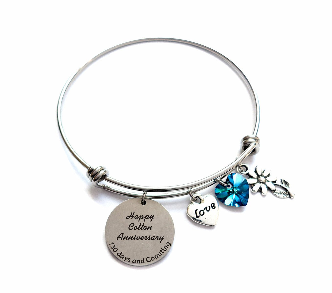 Bracelets 730 Days And Counting Happy 2nd Wedding Anniversary Bangle Bracelet With Blue Love Crystal Gift 2nd Anniversary Gifts For Her Cotton Anniversary Gift For Her Handmade Products